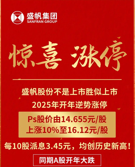 国庆之始,更多盛帆股分的职员就连继发来2个好声响:十是单位投入市场了每10股派息3.45元的分配原则策划,二要单位控股权的进行交易价···